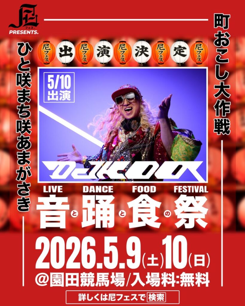 DJ KOO 出演決定!! 尼フェス “町おこし大作戦” 2026年5月9日(土)/10日(日)