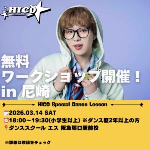 プロデュース、振付、パフォーマンスのすべてを経験してきたHICOから、音の取り方・表現・振付を直接学べる貴重な機会です。このチャンスをお見逃しなく!
