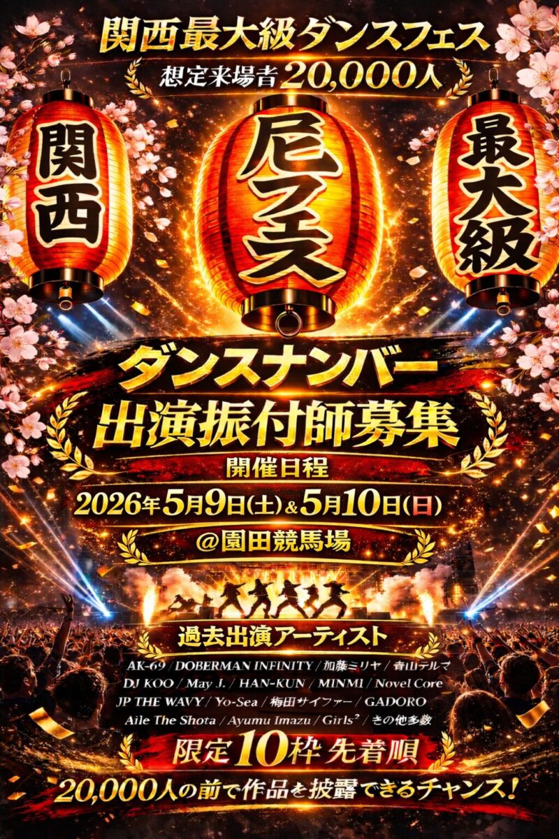 一般公募ダンスナンバー出演振付師 募集開始 尼フェス “町おこし大作戦” 2026年5月9日(土)/10日(日)